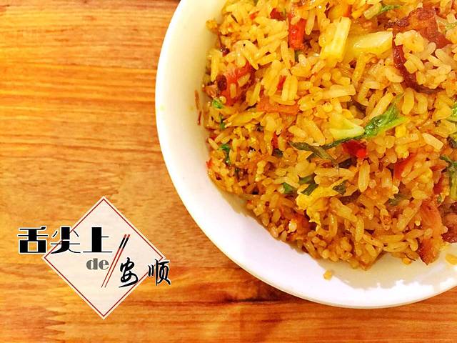 从旧州开车回到安顺也就半个小时,晚上又来到儒林路吃饭,今天的晚餐是安顺小吃-怪噜饭(当地的一种炒饭):用香米,腊肉,鸡蛋,青菜以及这里吃什么都要放的折叶根(就是鱼腥草,味道有点儿那个)炒制而成