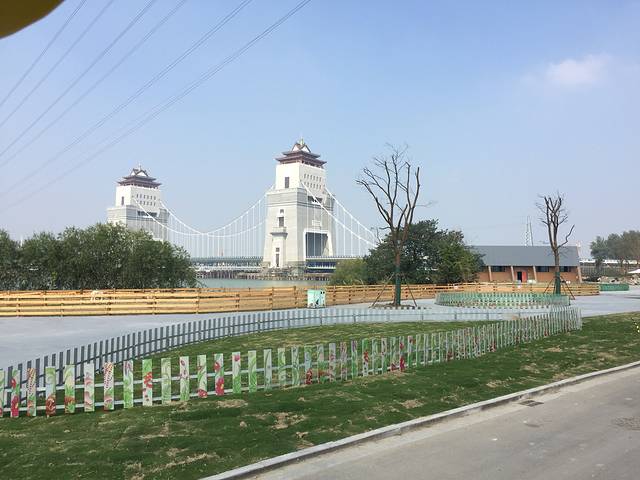 远观美丽的花坛,万福大桥,在建的城堡