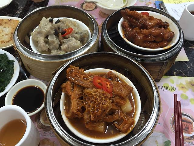 菠萝糕、芋头排骨、牛百叶、酱汁鸡爪