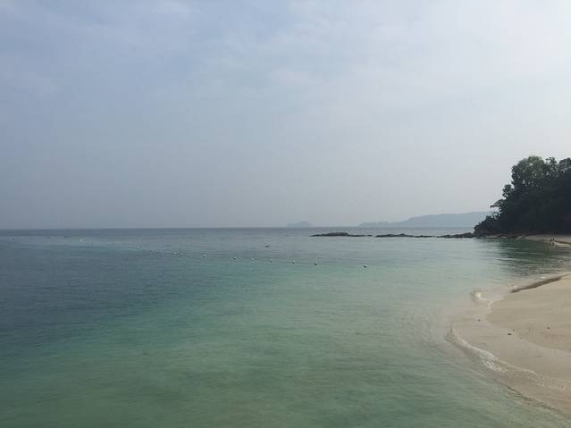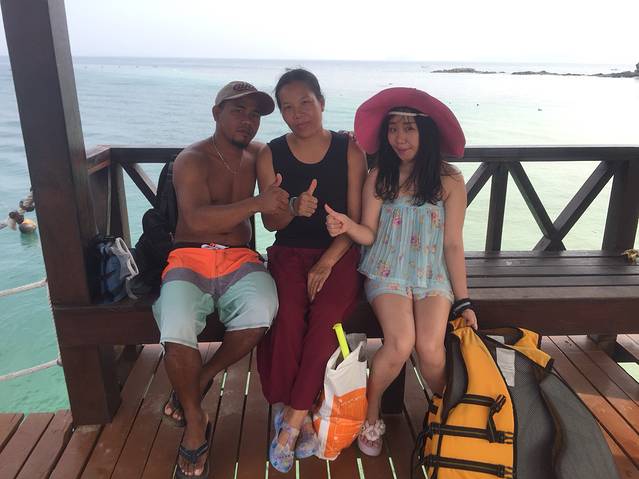 今天打算走海岛,我们在众多岛屿中选择的是美人鱼岛,因为都说水清景美。我是在某宝订的,324元,往返接送+中餐+2次浮潜。因为自己要坐船买票的太麻烦了,岛屿较远。车子7点就到酒店接我们,幸运的是导游今天只接了我们三人,所以他开的是他自己的车出来,我们专车咯。市区距离码头一个多小时,导游阿韦94年的,一路上听着年轻人都懂的歌曲,无代沟!!我和我妈一路聊天内容全被他听懂了,因为我们说的客家话,他也是。码头距离美人鱼岛一个小时,在此提醒大家,千万不要靠船边坐,别想着可以欣赏美景,去到那有你慢慢看的,要不然你就会像我一样被浪打浪快一个小时,又疼又冷又咸!!快到岸边时海水像分割线一般一边湖蓝一边深绿!太美了!到了就先安排浮潜,因为今天风有点大,怕下水晚了浪会大,装备齐全船开出十来公里,我们就开始畅游了,因为是浮潜,所以我三脚猫游泳功夫也不怕,倒是导游和船上的工作人员成了闺蜜和妈妈的全程1对1教练。由于怕手机进水,所以没有带手机下海,抛开手机,尽情看鱼吧!玩了大概一个小时,午饭后就是自由活动拍照,2点半返程。说实在,自由活动时间太短了,基本就只有一个多小时…拍完照返程时风浪特别大船颠簸得厉害,中途船还坏了等待支援,可把妈妈吓坏了,她想到了少年派。而她是旱鸭子,而我…只是颠簸得难受,半小时后继续航行。我们今天还有一个目的是到香格里拉酒店后面看最美日落,后面的时间都在疯狂赶车,最后虽然抵达丹戎路沙滩,但是还是没有见到想象中的火烧云。朋友说是受隔壁火山爆发空气中太多灰尘,也就是雾霾,所以没办法。只能在海边拍拍照吃吃猫山王啦…又是愉快的一天!行程松动的朋友我建议安排一晚住岛上~