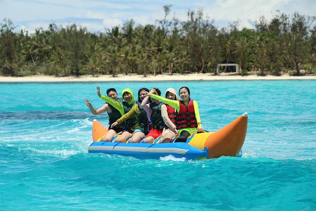 军舰岛我们来了。军舰岛海水超蓝、超清,地接全程服务拍照,(*^__^*) 嘻嘻……,我们还结实了另外一对闺蜜和夫妇,大家在一起玩的甚是愉快!!!我们选择了海底漫步、香蕉船、浮潜、拖伞等娱乐项目。这几项大家一定要玩哦!超美、超刺激!浮潜工具最好自己买哦,我和闺蜜有洁癖,如果你嫌带着麻烦,地接小王会提供的。军舰岛照相一般都是地接照,他有水下相机,你只要带个SD卡就可以了。上美美的照片啦,一整天都在军舰岛,自由行真是很惬意,想怎么玩就怎么玩,我和闺蜜都晒伤啦!哈哈!!!但还是意犹未尽啊!!!最后岛上都没人了,所有旅行团都走了,我们肆意的照相啦!哈哈!回程又坐着拖伞,心情美美哒!!!俯望整个军舰岛,无尽的遐想!!!!