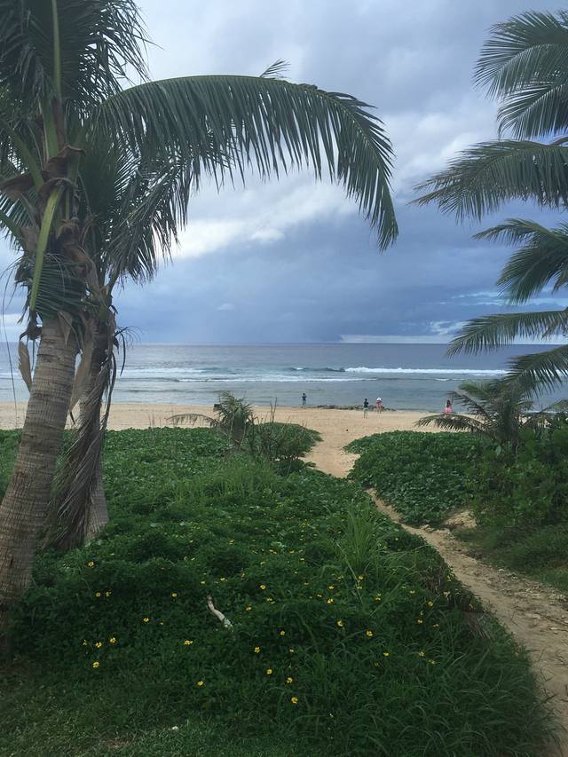 定了下午一点半来接我们,可是地接小王两点才来,我和闺蜜等的不耐烦了。但是据说小王去买晚上BBQ食物去了,还是原谅他把(我们是吃货),哈哈!南部有禁断岛、星沙海滩、塔帕丘山、日本弹药库,还去了卡梅尔教堂,里面在祷告,便没有拍照。晚上我们和一同旅行的朋友一起在海边吃了BBQ、做了游戏,超开心,烤肠、牛仔骨、大虾、培根等等应有尽有,味道超好吃,由于是地接中午去超市购的,所以食物很新鲜,手艺也不错呢!