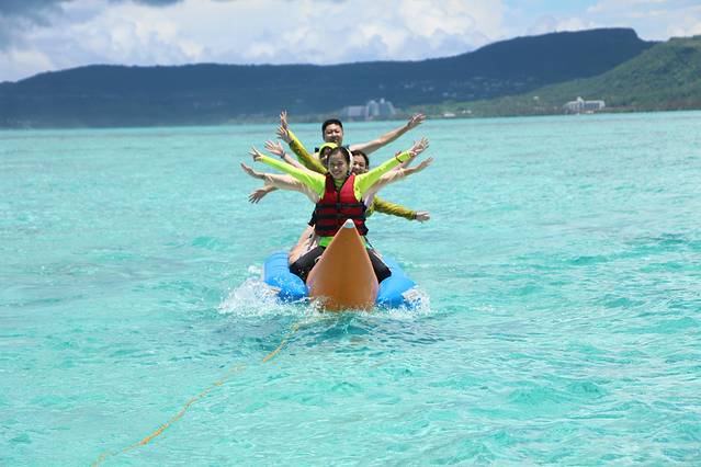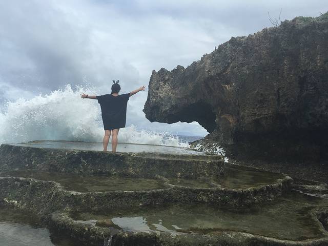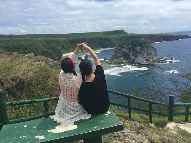 早上和地接导游说好8点半到酒店接我们,一天的行程开始了!我们去了北部:有鸟岛、日军最后司令部、万岁崖、蓝洞、鳄鱼头,还有丛林探险、圣母露蒂斯圣地,由于台风刚过丛林探险名副其实。鸟岛真的很漂亮,可惜没有带单反,照不出鸟岛的美。后来下雨了,我和闺蜜让地接送我们回酒店了,怕影响拍照,嘿嘿!下午回酒店睡一觉后晚上去酒店沙滩拍照了,上图啦