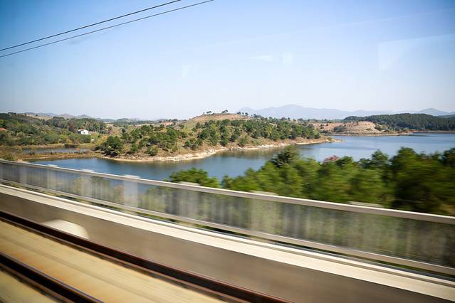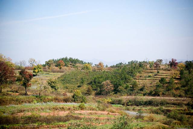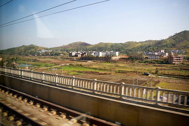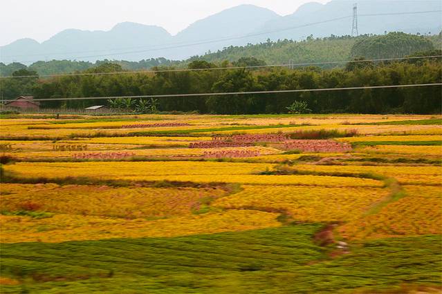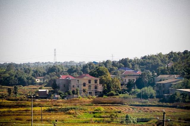 但随着北上,窗外慢慢变成一片湛蓝,进入湖南后,开始有了秋冬的味儿,掩藏在村庄中的红红蓝蓝瓦顶,让我对这趟北方之旅开始有了新的期待。