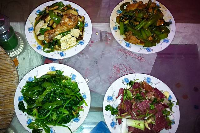 其实回想下,临近傍晚到达的时候,的确是看到门口有鸡圈,里面也有几只适龄的鸡,可是我总记得Joe说过,他们这里的饮食很不讲究,一个馒头就着咸菜都可以是一顿,不像我们那样大鱼大肉菜式丰富。