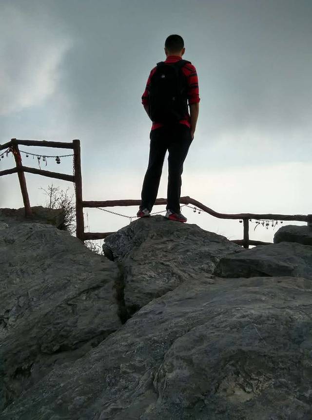 在五老峰遇到两个小姑娘结伴同行,邀请我一起拍个照片,本来实在不想拍,无奈之下,拍个背影吧。
