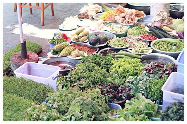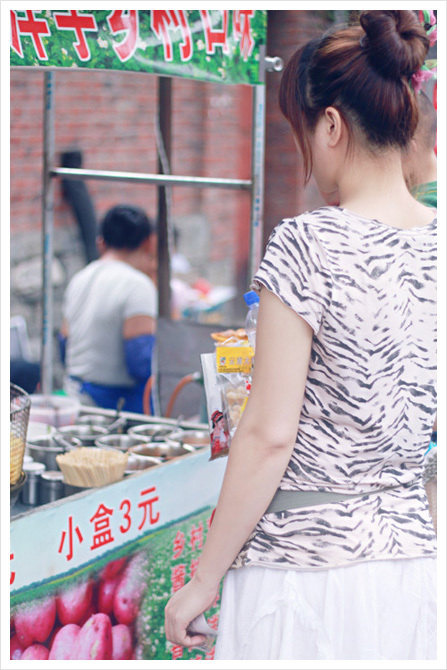 在南门门口的延伸路上找饭馆,不知道是过了1点还是这本来就不是热闹的地方,总之人气很淡,菜都喜欢摆在门口,像一块块种着在地里,想要什么就拔什么一样。偶有苍蝇蚊虫路过在所难免,马路中间汽车行人扬起的灰尘也无法抵挡。