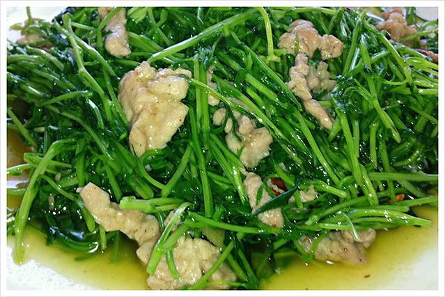 最先上来的好像叫什么丝苗炒肉,第一口发现也就是普通豆苗而已,不过在这里能吃到新鲜的猪肉,还真是不容易。