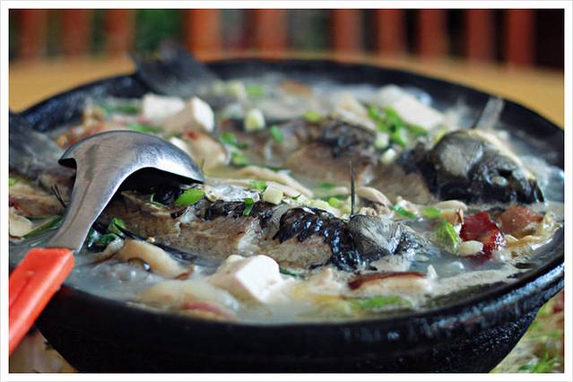 这个砂锅鱼上来的时候还是把我大大的一惊,竟然有两条。用的是新鲜鲫鱼,混合了豆腐、海带及腊肉等等,味道不错,份量也十足。