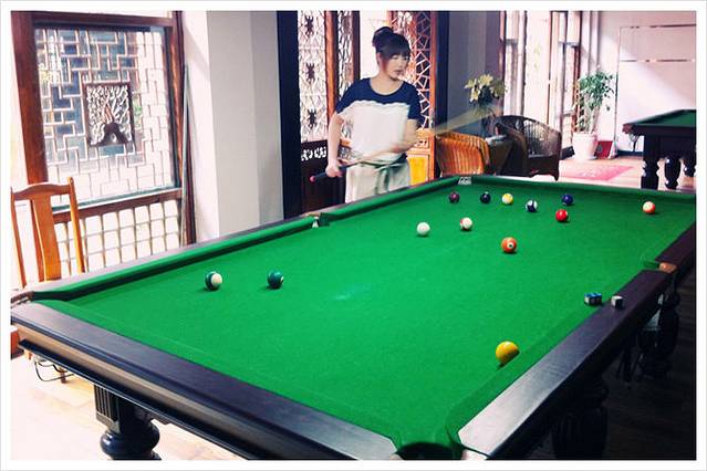 客栈大堂的桌球对住户是免费的,想打两局等待放晴,无奈球艺太纯朴,半局后坚持不下去。