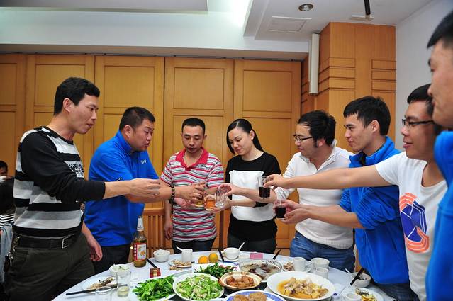 车友们从陌生,到相识,到相知,举杯相聚一堂一饮而尽