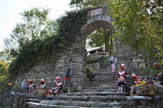 阶上,随处能见到身着瑶族服装的老人、妇女和小孩,他们以农耕度日,或贩卖