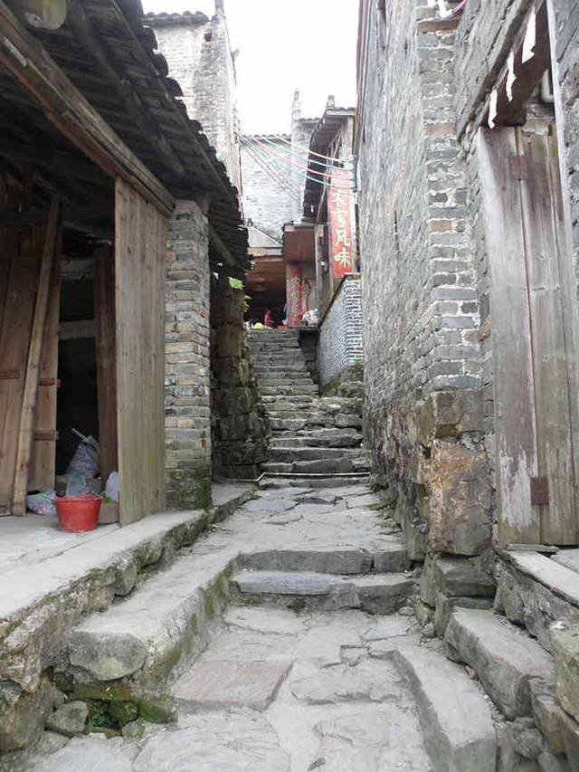 进入石门,向上望去,一排排整齐划一的古典建筑民居遍布山岗,古屋一律
