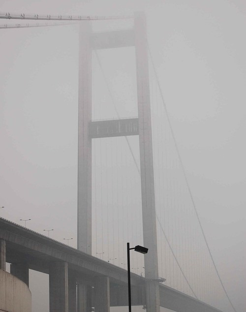 两个小时以后,我们乘坐的巴士来到润扬长江大桥。大桥连接起了南北两岸的镇江和扬州,从而使得我们今天的北上不再舟楫以渡便可直达扬州。经过这座曾经创造了多项记录的宏伟大桥时,下面原本浩瀚宽阔的长江感觉变窄了,各种船舶像一叶叶小舟漂浮在江面上。