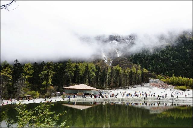 没看到希望中的蓝天白云映碧水,看到了朦胧的雪山,不遗憾,和这么多亲盆一道游走,乐融融就是心底的美景,知足,快乐!