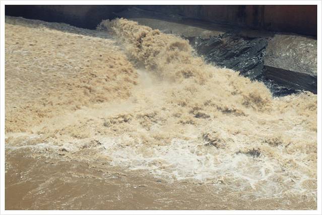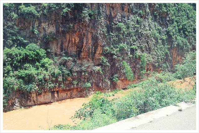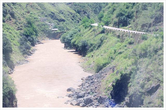车子一直沿着这样的溪流走,也不知道有多少溪,但水有时候是顺流有时候是逆流的,不过无一例外的是,这些水都黄浊得不比橙汁逊色。