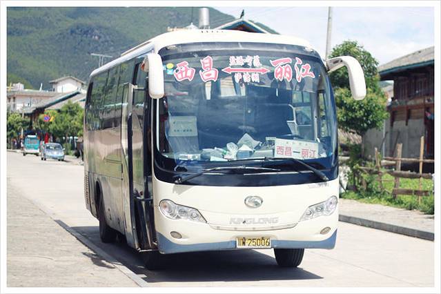 11点多的时候,从丽江去西昌的大巴终于进了泸沽湖站,下来四个人后,我们如约补上了。车内有点破旧,空气也很闷,过道很窄,我们提着大包小包的行李,身子左侧右侧的往后挪,坐的多是男人,空出来的座位都是单个的,也就是说不能和朋友坐在一起。我抬头突然眼尖的看到最后排两侧竟然可以开窗,便跟司机提了晕车的原因,希望他可以帮忙调一调让我们坐到窗边,司机说先到下面吃午饭,一会出发前再调整。