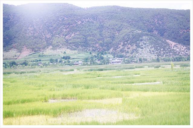 车子沿着湖边走,很快窗外出现这样一大片草,还是长在水里的,这应该是草海吧,可惜没来看过。