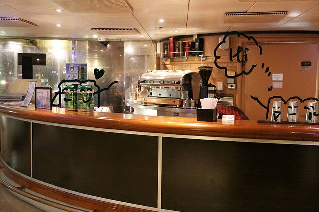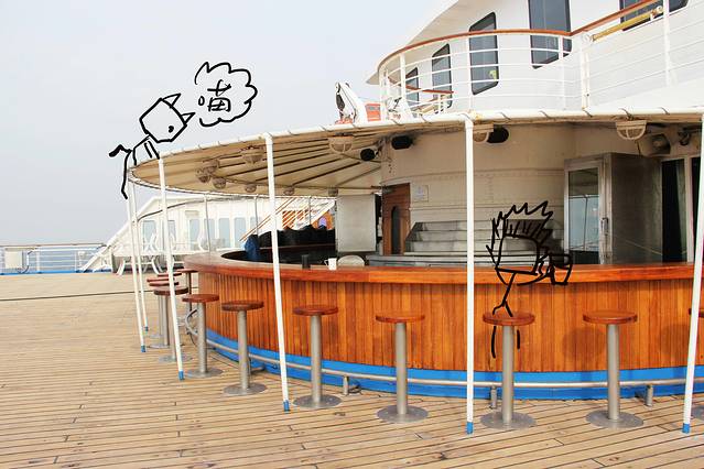 甲板上一个小酒吧,风不大的时候可以在这里点东西喝哇,不过一般也没什么人在这里,太冷啦~