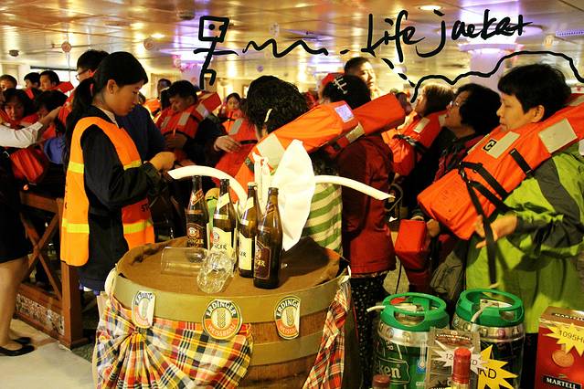 第一天来到船上的时候都会有【安全救生演习】,每个屋子里会有救生衣,听到广播后到门口指定的地点去集合,接受安全知识演练培训