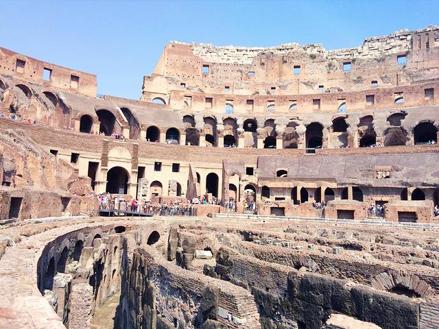 跟我之前教科书中想想的古罗马斗兽场有点不一样.书上说灌进水这里可以海战.平时可以用来人兽大战,奴隶绝对.这环境怎么打呢..很多建筑都缺失了