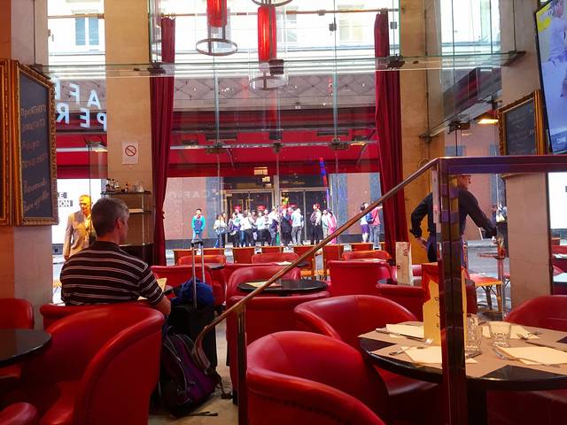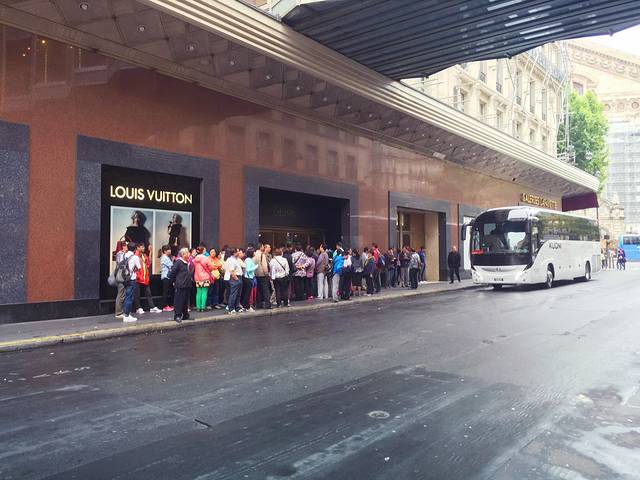 在老佛爷百货喝着早茶,一大早就看到赶着来购物的同胞
