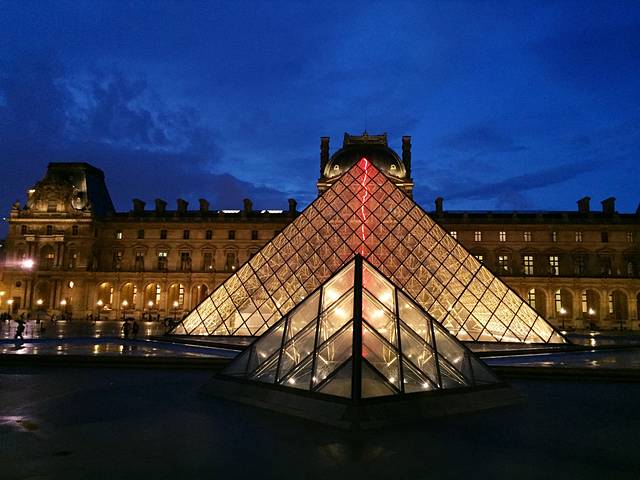 到了入住酒店放下行李之后直奔巴黎的罗浮宫,第一眼见到卢浮宫的这种视觉震撼。太太说卢浮宫的设计者是她苏州老家的贝律铭。哈哈,不愧是书香世家长得的设计师