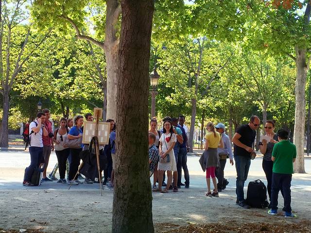 和太太散步在香榭丽舍的大街上时太太突然想来一张素描,有路过的同学可以试试