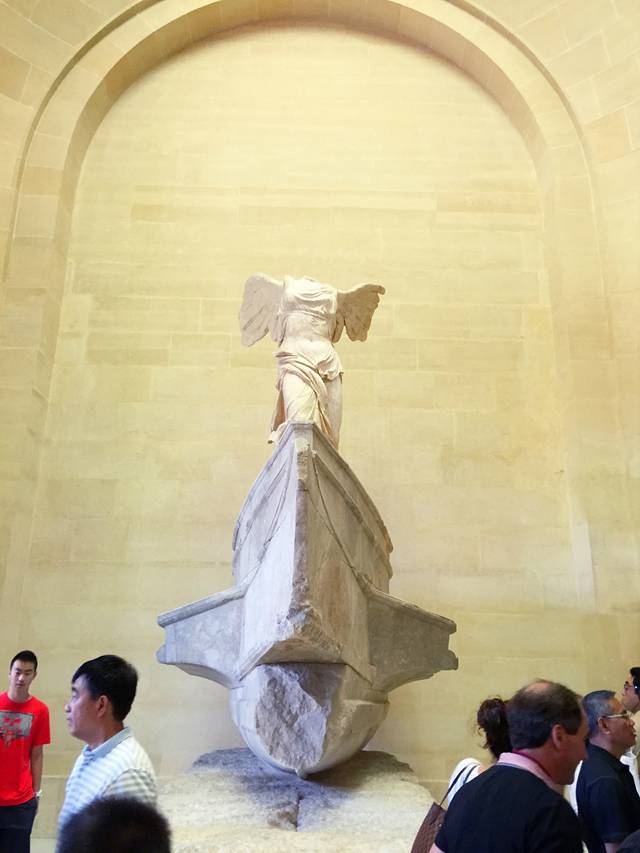 萨莫色雷斯的胜利女神。卢浮宫镇馆之宝之一。简单介绍下《萨莫色雷斯的胜利女神》,又名《沙摩特拉的胜利女神》、《萨莫色雷斯尼开像》(尼开,即希腊神话中的胜利女神,在罗马神话中称维多利亚),大理石雕像,高328厘米。创作于公元前190年。现藏法国巴黎卢浮宫。是希腊化时期留存下来的著名杰作的原作,被奉为稀世珍宝,作者已无从考证。这尊雕像虽然头部已经残缺,但从她仅仅披着一袭"薄纱"的胴体可以看出她那轻盈婀娜的风姿。她是为纪念一次古代希腊海战中沙摩特拉岛的征服者德米特里大败埃及王托勒密的舰队而制作的刚柔结合的艺术品。