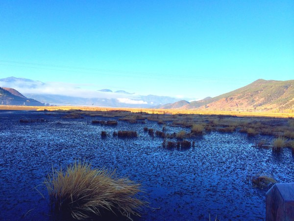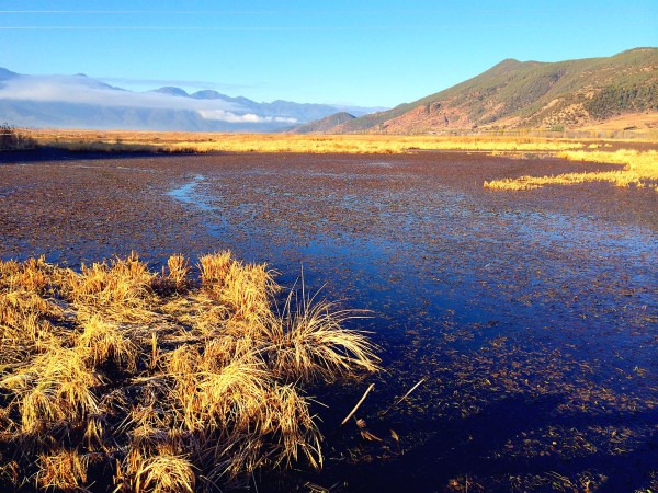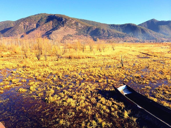 在空调房里睡了个甜甜的觉起来,完全感受不到外面只有零下的温度。酒店的窗户上都结了一层霜。匆匆吃完早饭就开始环湖游了。泸沽湖很大很大,如果深度游的话三四天完全没有问题。下一站是草海,这是在泸沽湖获赞很高的一个景点。秋冬是看草海最好的季节。