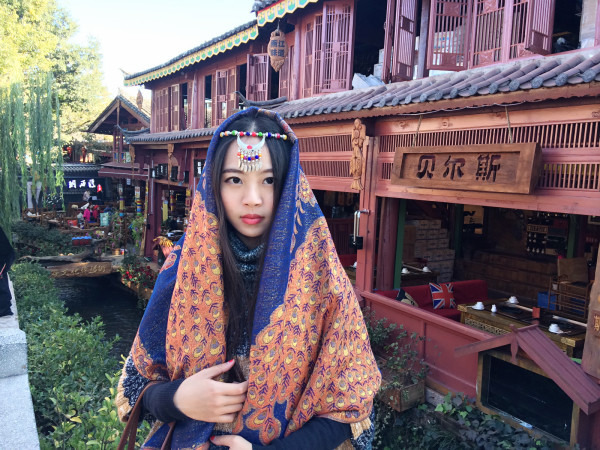 因为前一天感冒的缘故,今天不打算去远的地方了,就在古城里晒太阳。中午天气还挺热,于是随便找了一家民族服饰的写真馆拍照。这样的写真馆在古城里到处都是,价格都是一百九十九(两套),两百九十九(三套),不知旺季会不会贵一点。不过我的个人体验是,化妆太假不象本人,摄影在一个小时内草草了事,pose也都是最俗最烂大街的那种。如果很喜欢民族服饰想拍照留念的话,建议可以只租他们家的衣服,二十分钟几十元,不包化妆和摄影。这张是我认为不错的,一直以来都很喜欢苗族服饰,今天终于如愿可以穿着得瑟了!