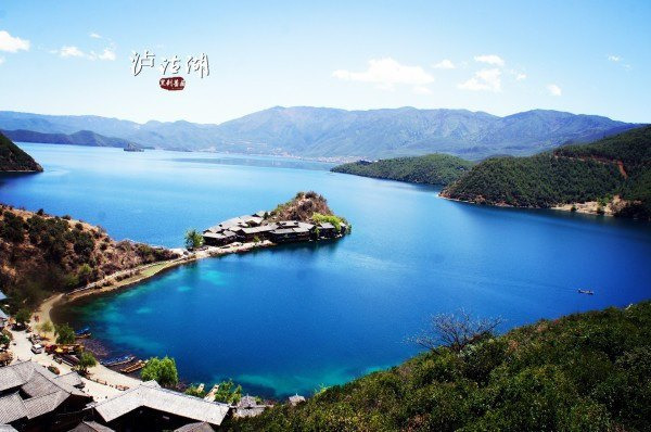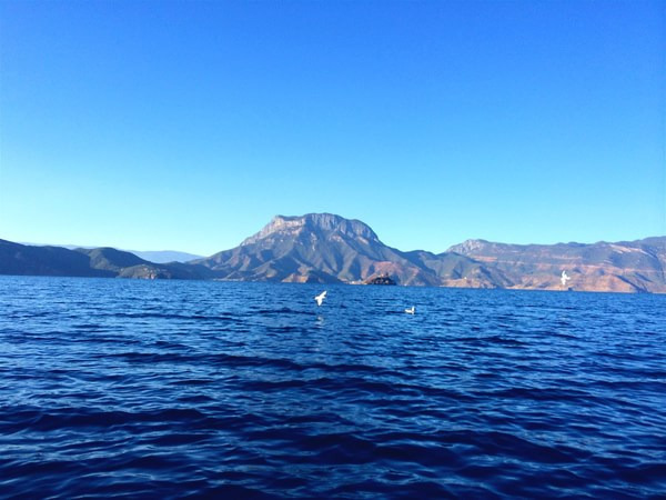 秋季是泸沽湖最美的季节,湖水和天空的大片蓝色渲染了整个山脉和村庄。