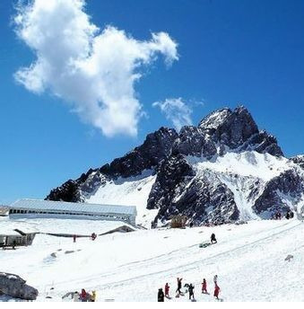 我们先是坐缆车上山到达海拔4506的高度。然后需要小爬一百多米到达玉龙雪山顶峰。想想也不是很艰难吧。主要注意的就是做好防晒措施,山上的紫外线尤其强。