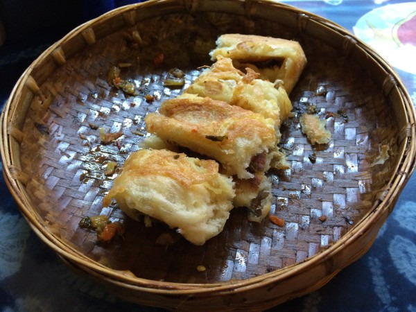 听着客栈边小溪的流水声醒来,睡到自然醒的感觉太好了。出门觅食去!寻着香味随便进了一家路边的小店,点了当地很有名的粑粑,沾着老板娘自制的辣椒酱,简直是流口水了。