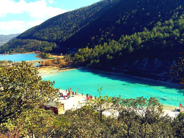 接下来就是今天的第二站:蓝月谷。蓝月谷据说是玉龙雪山的雪融化之后形成的湖,有‘小九寨’之称。虽然没有九寨沟那么惊艳啦,不过倚仗着雄伟圣洁的玉龙雪山,这颗精致的小翡翠还是别有一番风韵的。大家且看下面的照片吧: