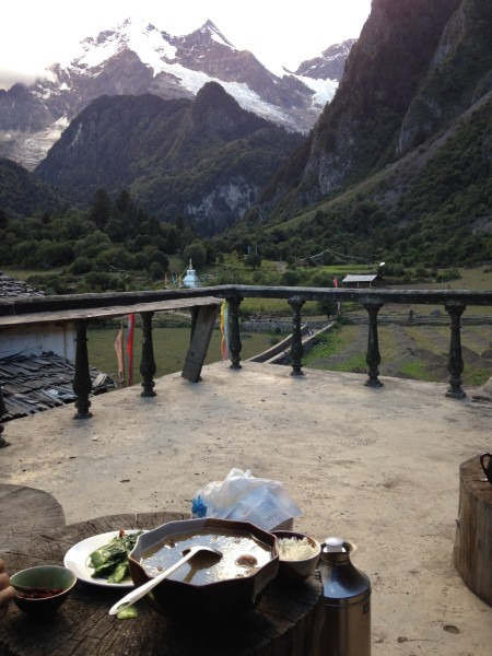 这一段的海拔已经到4000了,上酒店的楼梯都有点儿困难,一路上全部是山路,自驾游还是很危险的。途径纳帕海,东竹林寺,金沙江大拐弯,最后来到梅里雪山。飞来寺这边吃的蛮贵的,我们就吃了三盒泡面,买了个青稞饼。发现泡面还是备少了啊。又去小商店买了点儿士力架,这也是必备的。