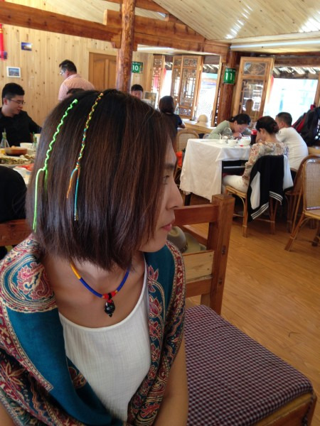 早晨起来,老妈早餐在K2吃,每人10元,挺不错的,我俩没吃。然后去逛了一下束河古镇,路上辫了小辫哈,10块钱3辫。还给妈妈买了条裙子,又买了好几条围巾,才发现自己昨天被坑了,哎。中午在别人的推荐下去了粗茶淡饭,确实非常好,牛肉土豆,酸菜笋片(最爱),水性杨花都超级赞。下午,打车去了丽江古镇,提前订好了客栈,网上口碑非常好的自由生活驿站,他们除了客栈还有一个自己的户外俱乐部,我们就是冲着他们的雨崩行程而来的,他们老板都是喜欢旅行的驴友,我们到的时候客栈掌柜阿飞(微信:15912234722)刚从印度菩提伽耶朝圣回来,请我们在客栈院子里面泡茶,分享一路的旅行故事,我们真是羡慕啊,什么时候我们也能像他们一样来一个说走就走的行程呢。晚上去逛了丽江古城,不得不说,东西真是贵,吃的更是贵,一碗米线25,外面只要7块钱。要想买东西,可以买那些在路边卖的,没有店面的,比较便宜。那边有个连锁的甜品店,叫丁丁甜品,进去试了一下,口味可以,价格也适中。