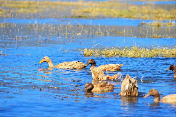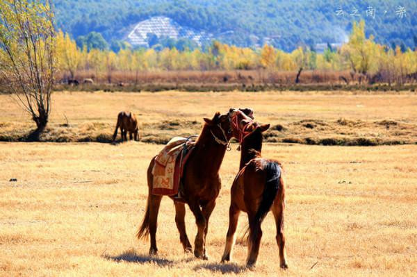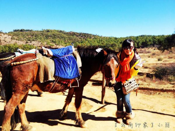 每一天,都是艳阳天。金色的阳光穿过树林暖暖的洒下来,地面上清晰的反射到骑马的身影,我的坐骑叫“小丽”我觉得马也是通人性的动物,它就像可以听懂我说话似的,我们配合的很默契。在跑马场休息的时候,我们都在喂马粮,我把豆子放在手心里,放在它嘴边,它吃的很开心。在那个小小的跑马场,马夫带着我们跑了一圈,虽然没有跑的很快,但是也体验到骑马刺激的感觉。走一圈下来到了品茶的时刻,纳西族的茶和白族的差别不大,口感类似。回到原点,张敏万没有过足骑马的瘾,找了一匹马继续骑,不料从马上摔了下来,估计摔的不轻,他在岸上休息,我们几个去坐船。这个季节的拉市海没有过多绚丽的色彩,平静的海面上,偶尔有几只野鸭嬉戏而过。这个时