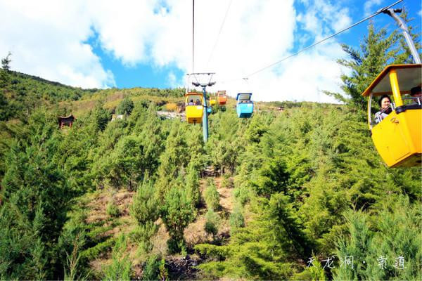 顶端就是“天龙洞”话说“天龙八部”的拍摄地。门头很气派,洞内的气温有点低,幸好穿的挺厚。碰巧遇到一位导游在讲解,一路上我们就跟随着他们的足迹,边听边瞧。走到“通天望月”需要多上几百级台阶,他们没有跟上来。我们自行前往去一探究竟。确实有那么一个洞口是可以看到阳光,看到天空。看来这传说是真的。参观完溶洞从出口坐索道返回。接下来是品茶,这次是三道茶。口味大同小异,类似于风花雪月。休息片刻,接着上路。