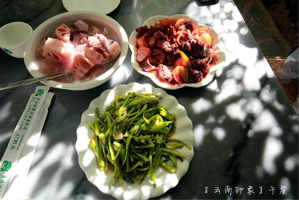 首先,我们认识了蜂蜂韩野,她已经快结束行程了。只剩下两天的时间和我们一起。经阿姨介绍,中午我们一起在“唠叨坊”吃饭,点了招牌“纳西烤鱼”“吹肝”和“水性杨花”,不知道是口味不对,还是胃口不好。简单吃了些,基本都浪费了。
