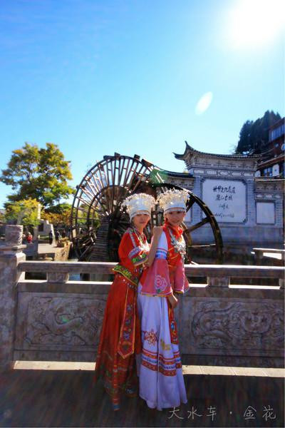 回到大水车 ,我和韩野想要尝试一下“民族风”,于是整了一套白族的民族服,俩人狠狠地美了一把。王曦童鞋当摄影师,阳光下,两个美女摆着各种pose,想要将这唯美的时刻就此定格。