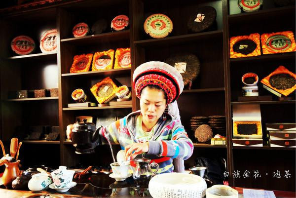 首先是看表演,品“三道茶”,所谓“一苦二甜三回味”,白族的特色茶文化。相对而言我们比较容易接受第一道“苦茶”。人生如茶,茶如人生,茶与人生,皆先苦后甘,甘苦自知,回味无穷,是故品茶如品人生。