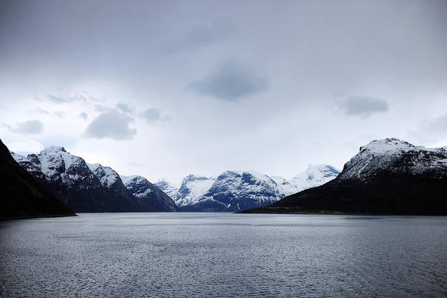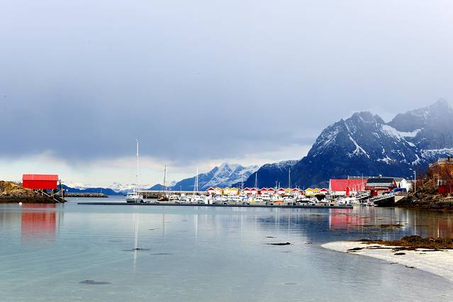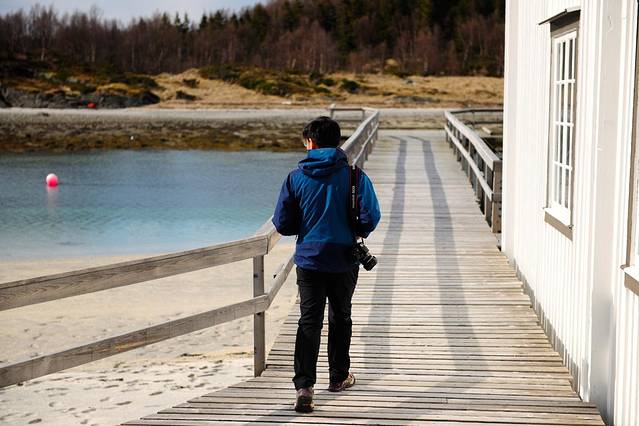 在这里,远处是深的浅的挪威海,突突的渔船,寂静无声的一群雪山,不说话。