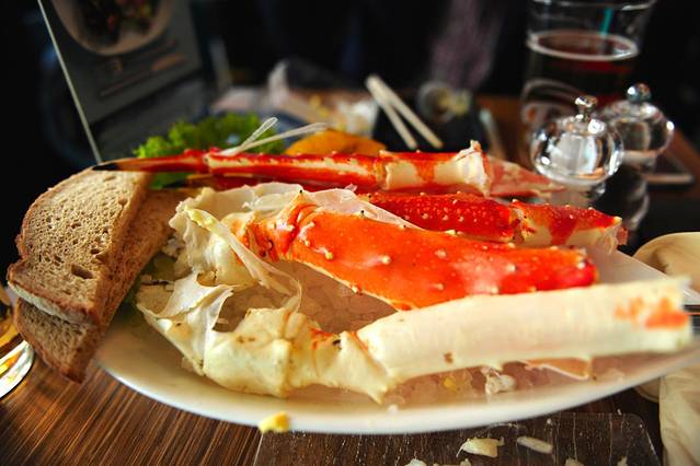 在奥斯陆机场候机时间比较久,确实无聊了···就找吃的。本来吧,我以为这次来能吃着帝王蟹,结果到了才知道,季!节!不!对! 简直是一个晴天霹雳啊,不心甘的我发誓哪怕去超市买也要吃一次,不然怎么好意思跟人家说来挪威出差了!?功夫不负有心人,在机场闲逛的时候居然让我发现了,虽然价格小贵,还是怒买一分份,味道嘛····咸了点,不过还是很满足哼 另外,吃之前太激动了忘记照相,吃完了才想起来,各位不要介意·····