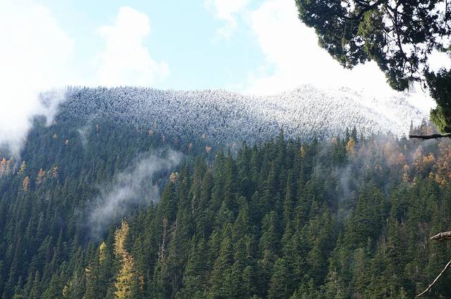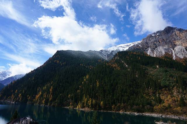 长海是九寨沟的最高之处,3103km,还可以看到雪山,这点还是蛮欣慰的。因为,我长那么大还没看过雪!