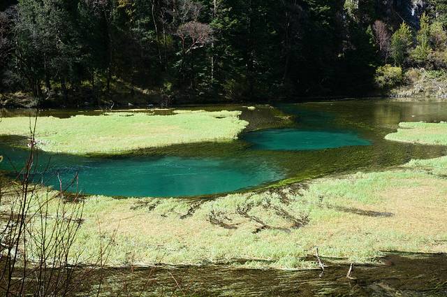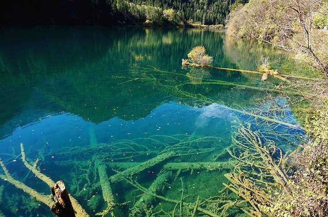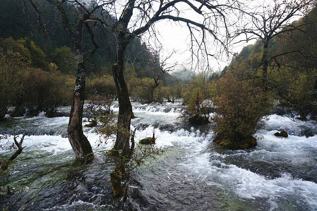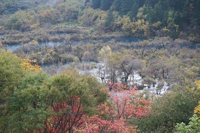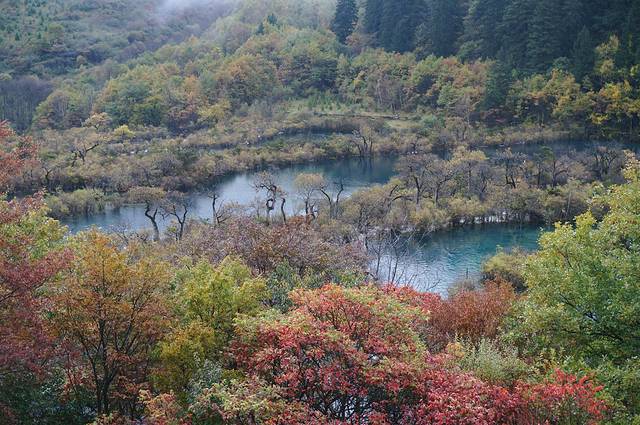 日则沟也逛完了,我们搭乘了开往景区大门的观光车,沿途经过了犀牛海、卧龙海、双龙海,有些站有停下来观看,有些站也就直接让它过去了,拍了一些照片,但是光线不大好而且有点大同小异,所以就不一一赘述了。