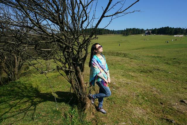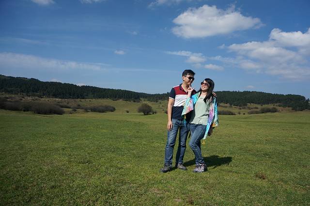 仙女山风景区,如果你不骑马的话,其实就一个景点——大草原。话说我在重庆就没有穿对过衣服,因为昨天被热到,所以今天就选择了皮箱里最薄的一件雪纺衫,没想到,上去高山上,轮家都是穿羽绒服的,上面风大非常冷,后来就买了一件披肩,保暖还是可以的。这里的大草原也不大,就是高山上的一大片草地。坐小火车很快就到了大草原了,接下来就可以疯狂拍照。