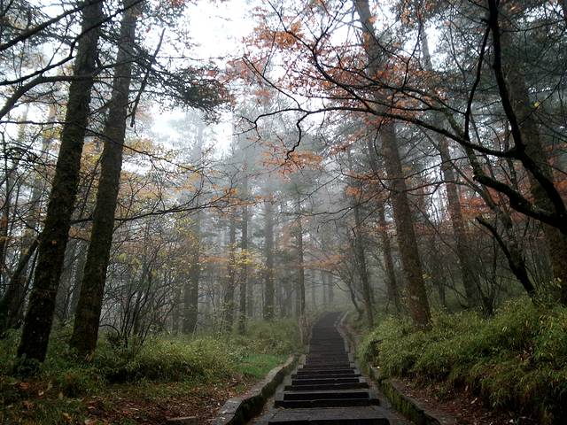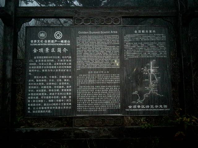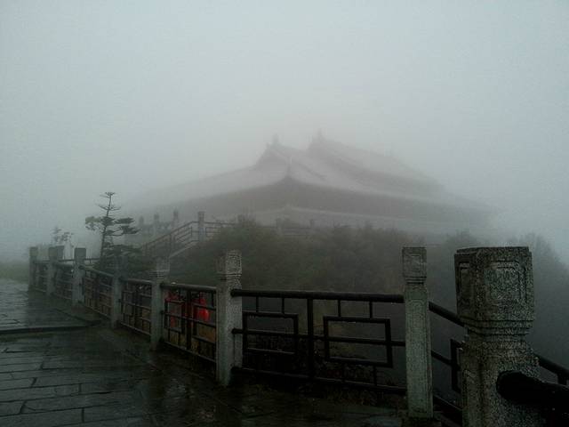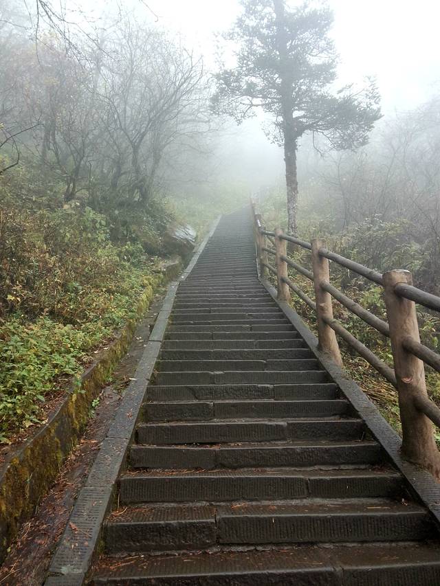 到了峨眉山还在下雨,高铁站直接有到景区的观光车,90元/来回。一路上都好大雾,到了山门口,司机要我们下车买票,不买不知道,一买吓一跳,票价居然要185元/人,还不包保险,加上保险就是190元/人。同车有两位游客直接就搭另一辆观光车回去了。(临时改行程真是太糟糕了)