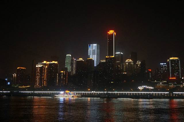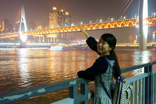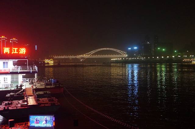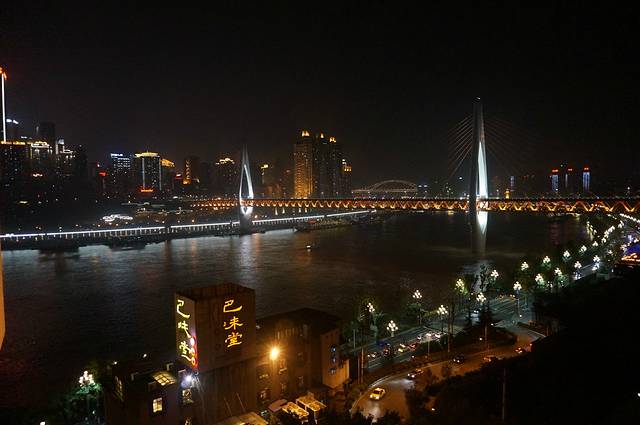 晚饭后,我们搭乘轻轨到了重庆标志性经典——长江索道。索道来回20元/人,早前只是一种渡江工具,重庆持卡居民仅需2元/人。晚上渡江观居高临下看夜景是很不错的,灯火辉煌十分秀美。