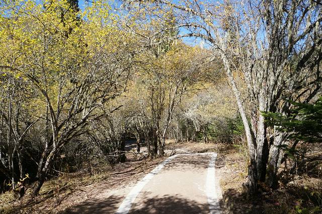 过了马路,下了N级楼梯之后,我实在不想走回头路,而且还要往上爬,于是做了一个令我当天后悔不已的决定——沿着栈道徒步1.6公里到五花海。